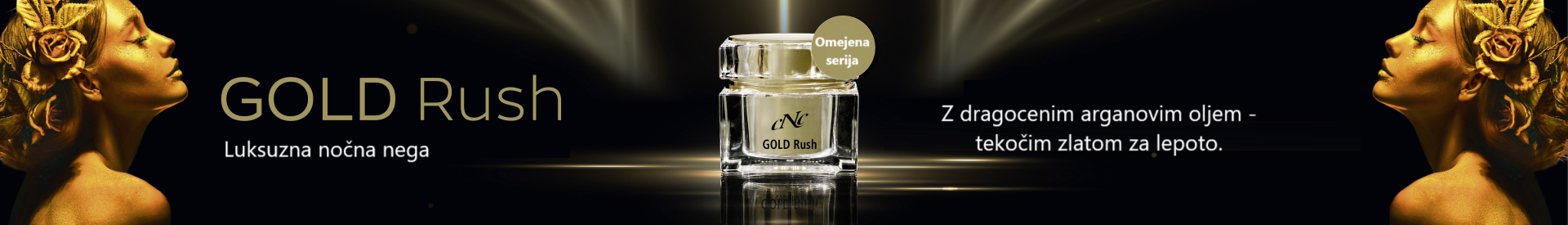 Luksuzna nočna nega GOLD Rush je pravi zaklad za iritirano kožo. Z dragocenim arganovim oljem – tekočim zlatom za lepoto, s tradicionalno medicinsko gobo porio in z izbranimi rastlinskimi ekstrakti razvaja kožo ponoči. Kožo pomiri po celodnevnem stresu, spodbudi obnavljanje kožnih celic in kožne strukture ter jo pripravi na svež začetek novega dne.